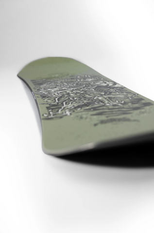 The PARK V1 camber configuration zeros out a traditional camber approach 4 cm before the end of the sidecut. The small zero camber sections provide a more controlled ride while retaining the response and power of a cambered board.
