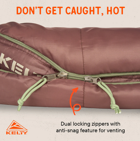 Offset quilted construction, a draft tube and dual-slide locking zippers keep your happy camper snug as a bug in virtually any weather.